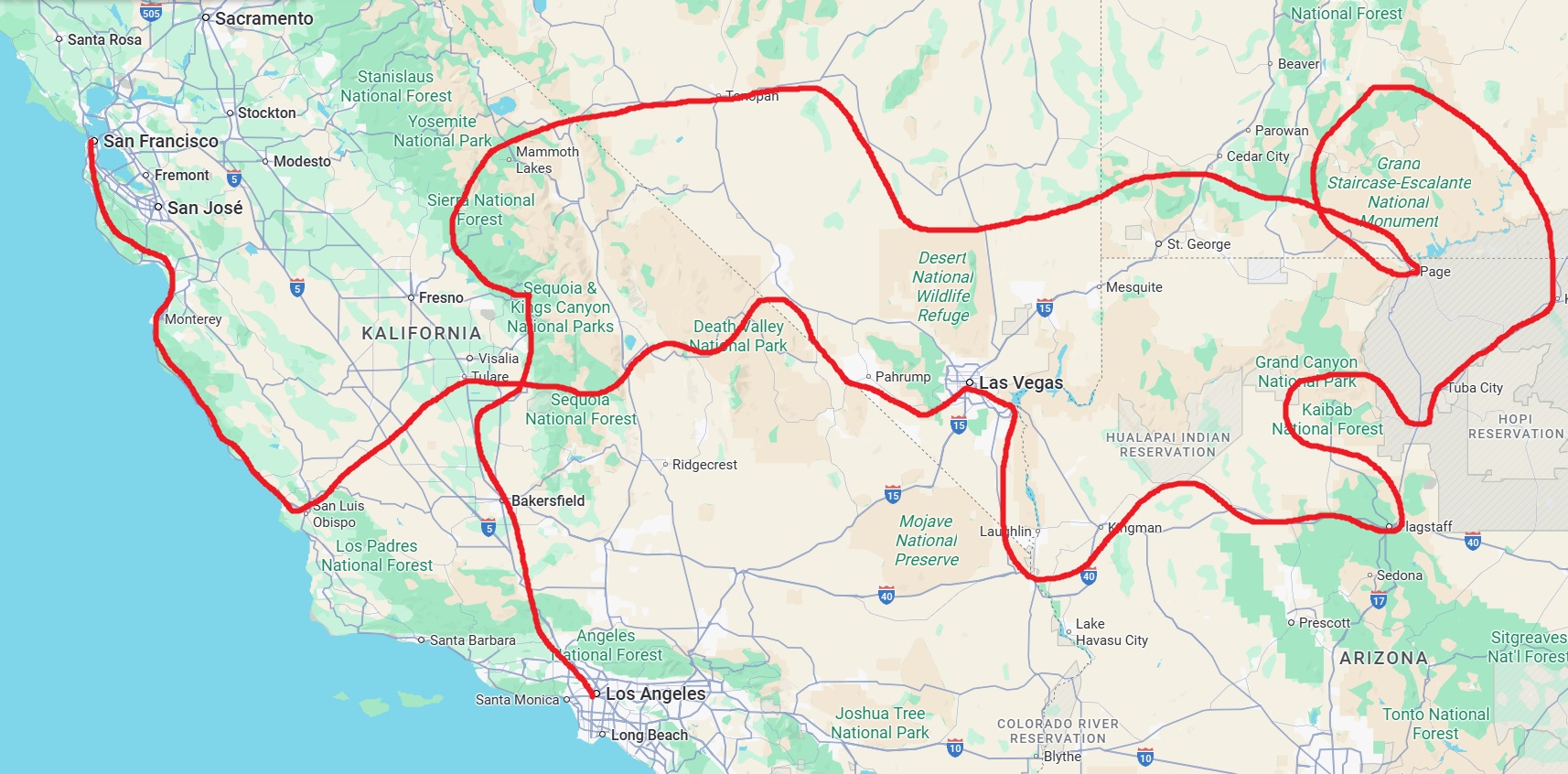 A túra startja/vége: Los Angeles / San Francisco